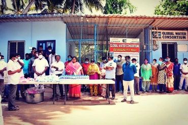GWC Projects worked on two major initiatives over the summer to help slow the spread of Covid in India as well as care for the individuals affected. The rate of spread was so high that the hospitals were unable to care for everyone, leaving some to lay in the streets to see if they would recover on their own. Global Water oversaw building and operating Covid centers in four different locations and sent oxygen concentrators from the U.S. to India. Here, GWC India Director and Kadali Project Manager, Shravan Kumar, represents at the opening of the Kadali Covid Center.